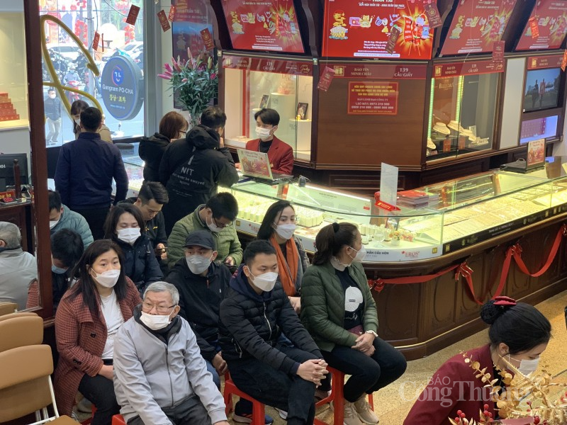 Cảnh người dân xếp hàng vẫn diễn ra ở các cửa hàng vàng tại các "phố vàng". Từ 6h sáng 31/1 (mùng 10 tháng Giêng), các hàng vàng mới mở cửa nhưng từ tờ mờ sáng, cảnh tượng người chờ xếp hàng đã bắt đầu xuất hiện trước các cửa hiệu vàng ở Hà Nội.  |