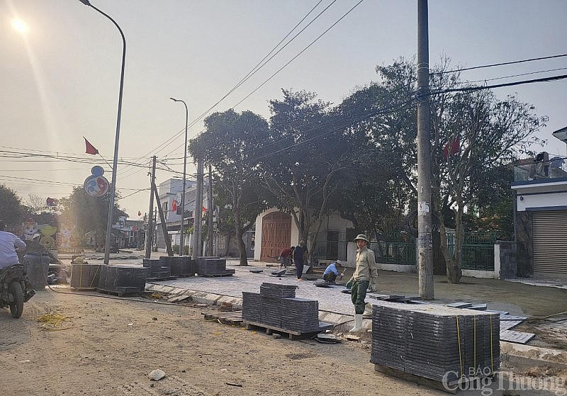 | Tại khu vực Cổng chào làng nghề Nghi Thuỷ vẫn đang là một đại công trường. |