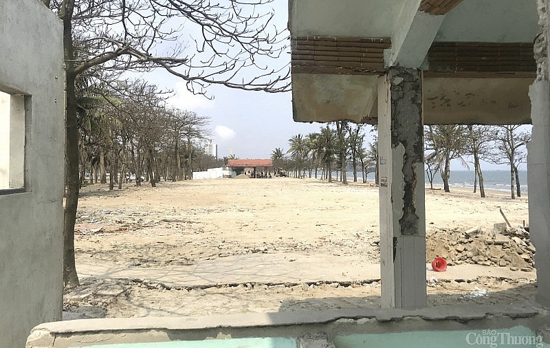 Hiện tại, các đơn vị thi công đang chạy đua với thời gian để hoàn thiện các hạng mục thi công. Họ thu gom, vận chuyển vật liệu, rác thải ra khỏi khu vực bãi biển. Đặc biệt, là quá trình tu bổ những công trình được giữ lại thành các cụm nhà vệ sinh công cộng, nhà tắm tạm thời phục vụ du khách trong mùa du lịch.