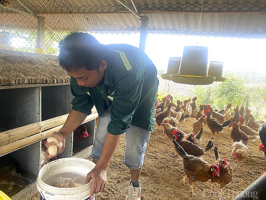 Cùng cảnh ngộ, 5 năm làm trang trại chăn nuôi gà sản phẩm “Trứng gà Nghĩa Hoàn” đạt chuẩn OCOP, nhưng chưa năm nào rơi vào cảnh mất giá như năm nay. Trang trại gà của anh Cao Văn Cường (Nghĩa Hoàn, Tân Kỳ) có 3.000 con gà đẻ, khi nuôi theo chuẩn OCOP thì quy trình nuôi khắt khe hơn, chi phí đầu tư cao hơn. Trong Tết, giá trứng được 2.000 - 2.200 đồng/quả còn hòa vốn chứ với giá hiện tại 1.200 - 1.500 đồng/quả thì lỗ nặng (lỗ khoảng 800 đồng/quả). Trung bình mỗi ngày xuất ra thị trường 2.000 trứng, tương đương lỗ 1.600.000 đồng”.