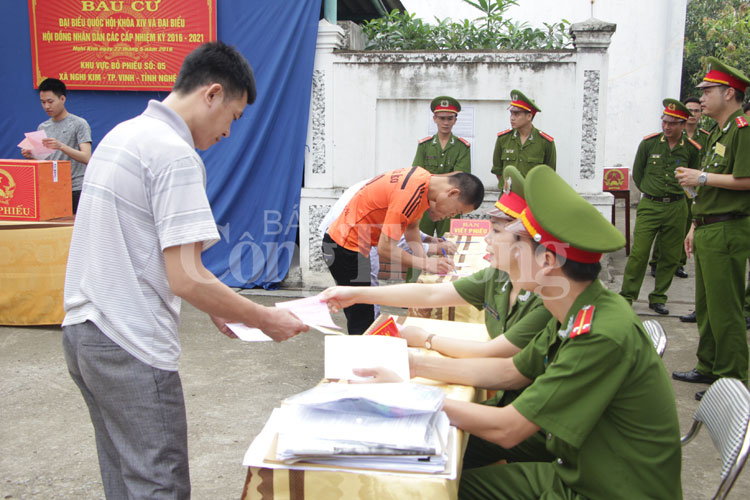 Tại Trại tạm giam Công an tỉnh Nghệ An, 7h15 sáng (22/5), công tác bầu cử đã được tiến hành. Để phục vụ công tác bầu cử, Trại tạm giam Công an tỉnh bố trí 1 điểm bầu cử ngay tại Trại tạm giam. Đây là điểm bầu cử thuộc tổ bầu cử số 5, Ban bầu cử xã Nghi Kim (TP. Vinh, Nghệ An) với 727 cử tri là người đang bị tạm giam, tạm giữ tại đây đã được các giám thị kiểm tra tư cách bầu cử và phát thẻ cử tri. Trước đó, các thông tin về người ứng cử cũng đã được chuyển đến từng cử tri để lựa chọn.