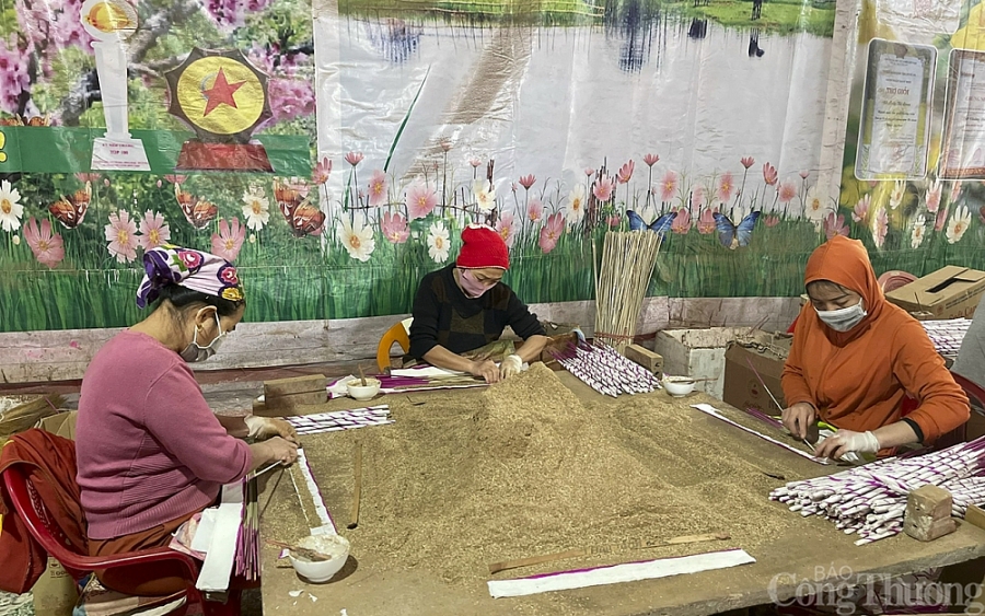 Để đáp ứng các đơn hàng đã đặt cho dịp Tết, cơ sở phải thêm công nhân thời vụ, hàng chục công nhân của cơ sở đang hối hả làm việc cả ngày lẫn đêm, trung bình mỗi ngày được trả công từ 250.000-300.000 đồng/người.