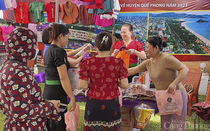 | Các sản phẩm ở hội chợ hàng Việt ở TT Kim Sơn, Quế Phong (Nghệ An) thu hút khá đông bà con vùng cao đến xem, mua sắm |