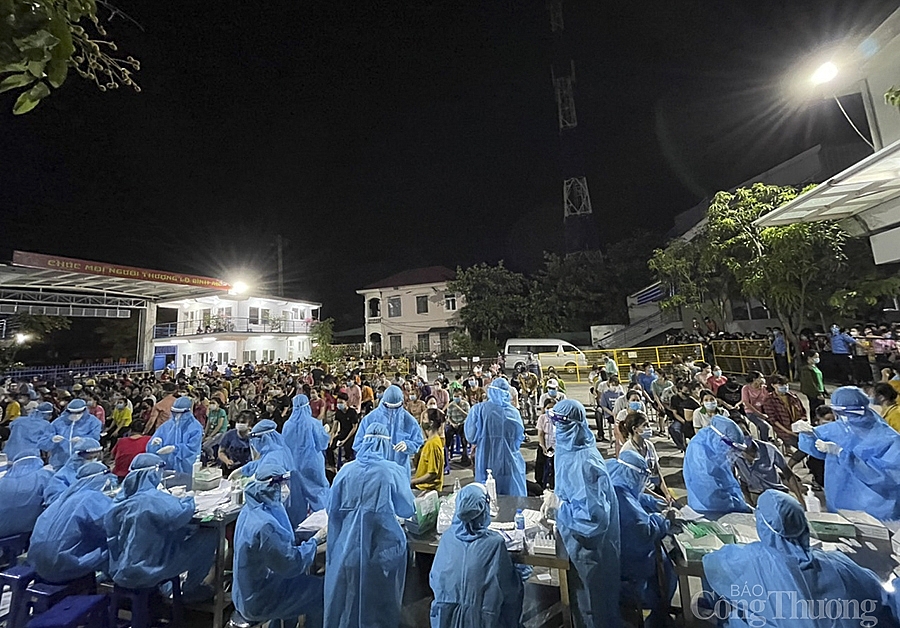 | Các nhân viên y tế đã xuyên đêm lấy mẫu xét nghiệm miễn phí cho hơn 3000 công nhân tại nhà máy may Minh Anh Kim Liên |