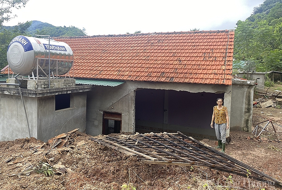 | Căn nhà của bà Vi Thị Loan bị đất đá làm sập một nửa vào rạng sáng ngày 18/10 |