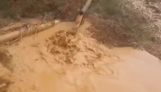 | Nước thải đổ theo đường ống ra môi trường ở một mỏ quặng. |