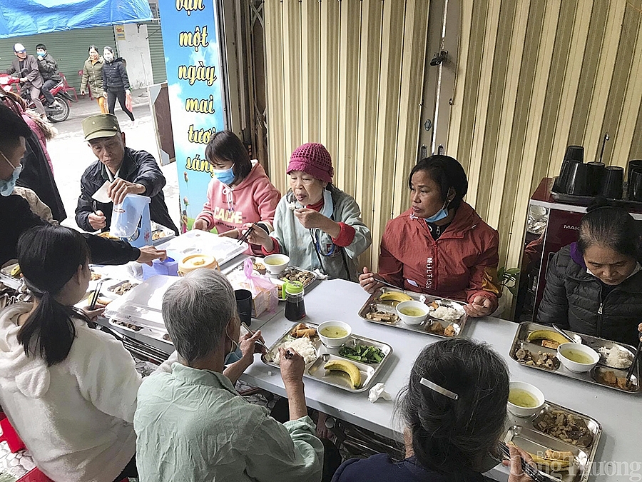 | Nụ cười rạng rỡ của các cô, các bác lao động nghèo ghé quán cơm 2.000 đồng |