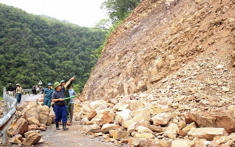 | Sạt lở núi nghiêm trọng gây ách tắc giao thông ở Kỳ Sơn (Ảnh: NTB) |