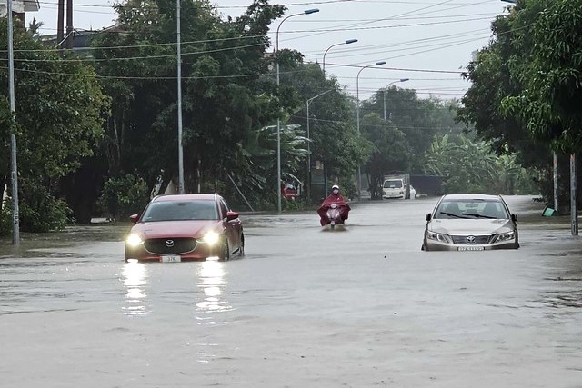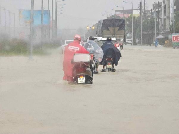 Mưa liên tục, kéo dài đã làm ngập sâu nhiều tuyến đường ở TP. Vinh (tỉnh Nghệ An), đặc biệt là trên các tuyến phố chính như: Nguyễn Thị Minh Khai, Nguyễn Văn Cừ, Quang Trung, Phan Bội Châu, nước ngập khiến các phương tiện di chuyển khó khăn. Tại đường Đinh Công Tráng (phường Lê Mao), nước ngập sâu nên phường đã căng dây cảnh báo.