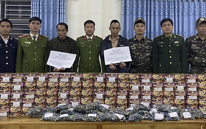 Quá trình xác minh, điều tra, đến khoảng 18h ngày 8/12/2022, tại khu vực khối 5 thị trấn Mường Xén, Công an huyện Kỳ Sơn, Đội kiểm soát Hải quan - Cục Hải quan Nghệ An, Đội 2 - Cục điều tra chống buôn lậu - Tổng cục Hải quan đồng chủ trì, phối hợp cùng đồn biên phòng Cửa khẩu Quốc tế Nậm Cắn, Chi cục Hải quan Cửa khẩu Quốc tế Nậm Cắn đồng loạt ra quân, bắt quả tang 2 đối tượng Hồ Việt Cường (SN 1987), trú tại xóm Hồng Thịnh, xã Diễn Hồng, huyện Diễn Châu; Phan Lê Đức (SN 1990), trú tại xóm 5, xã Đồng Thành, huyện Yên Thành về hành vi “Buôn lậu, buôn bán hàng cấm”.