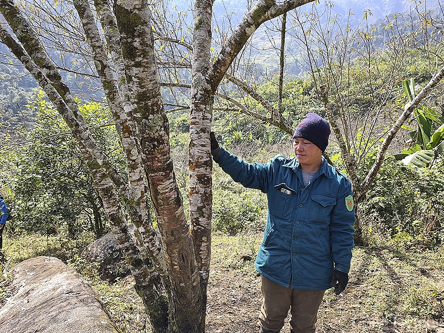 Theo anh Xồng Bá Lẩu, lớp địa y rêu mốc bám dày trên mỗi gốc đào trồng nên nhiều người nghĩ là đào tự nhiên |