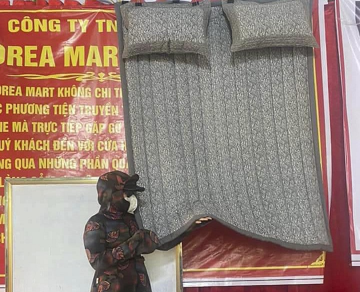 Những chiếc thảm trông khá đơn giản, nhưng được rao bán với giá gần 20 triệu đồng/chiếc. Một cặp gối được rao bán 4,4 triệu đồng. Dù giá cao ngất ngưởng như vậy, nhiều người già vẫn không tiếc tiền để mua. “Thấy họ nói công dụng thần kỳ quá, nhà không có tiền nhưng tôi vẫn đi vay mượn để mua. Bây giờ con tôi phát hiện ra, đành phải mang ra trả”, bà Hương nói.