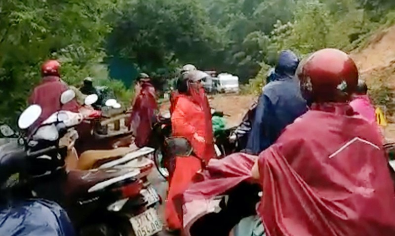 | Lũ rút nhưng vẫn còn mưa khiến cho nhiều tuyến đường ở huyện Kỳ Sơn bị sạt lở |