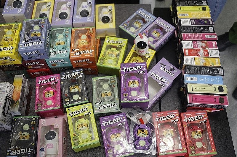 Còn tại Công an TP. Vinh (Nghệ An), đã phát hiện 29 vụ, 37 đối tượng có hành vi buôn bán, vận chuyển thuốc lá điện tử; tang vật thu giữ gần 20.000 sản phẩm, gồm thuốc lá điện tử, tinh dầu sử dụng thuốc lá điện tử các loại; đầu đốt, linh kiện, phụ kiện. Tất cả tang vật tịch thu đều mang nhãn hiệu do nước ngoài sản xuất, không có hóa đơn, chứng từ chứng minh nguồn gốc xuất xứ.