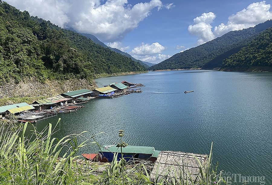 | Khu vực nuôi cá lồng trên lòng hồ tại bến thượng lưu đập thuỷ điện Bản Vẽ, huyện Tương Dương (Nghệ An) |