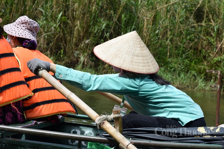 Dưới cái nắng gay gắt, những người lái đò vẫn cố gắng vượt qua để đem đến cho du khách những trải nghiệm thú vị về khu du lịch Tràng An. Quãng đường dài 15km cả đi lẫn về thời gian gần 3 tiếng đồng hồ, đó cũng là thời gian người lái đò phải chèo liên tục. Những hôm trời mát thì đỡ vất vả, gặp hôm oi bức nhiệt độ gần 40 độ, mồ hôi ướt đầm đìa, nhưng vì cuộc sống, những người phụ nữ làm nghề chèo đò phải gồng mình mưu sinh, mỗi chuyến như vậy họ nhận được 200 nghìn đồng. Về đến bến, ăn vội bát cơm nguội mang đi với quả trứng và rau luộc hoặc chiếc bánh mì rồi ngồi chờ đón khách tiếp.