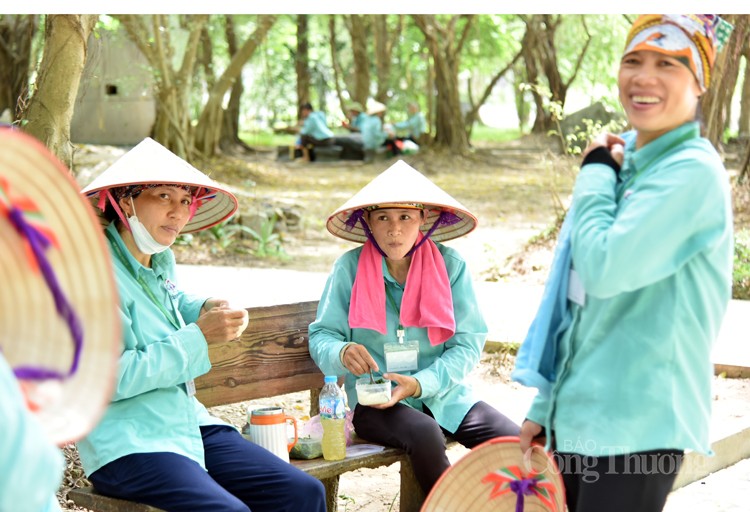 | Phút thư giãn hiếm hoi của lái đò, khi khách lên bờ chiêm bái |
