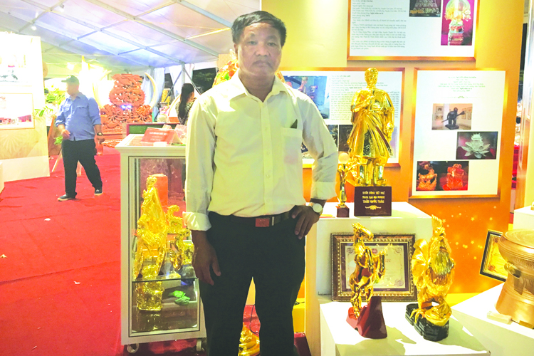 Nghệ nhân Vũ Duy Thuấn bên gian hàng tại Triển lãm - Hội chợ hàng thủ công mỹ nghệ 2016