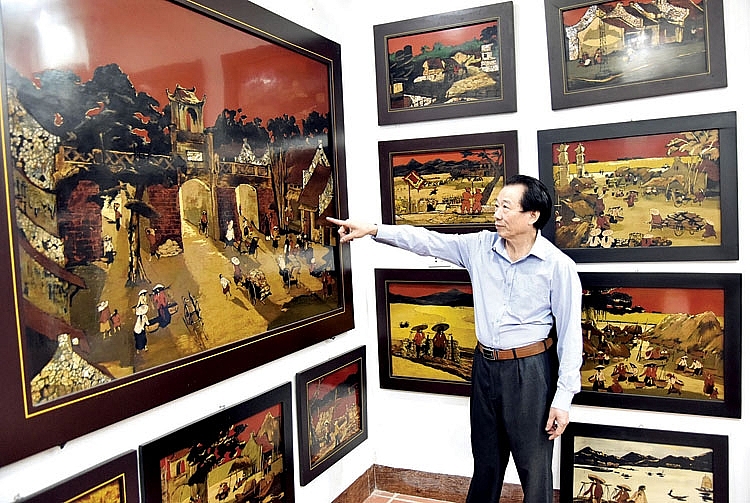 | Trăn trở và tiếc nuối trước nguy cơ mai một, nghệ nhân Vũ Huy Mến (làng Hạ Thái) vẫn âm thầm giữ lại cho mình dòng sản phẩm sơn mài truyền thống của các bậc tiền nhân để lại. |