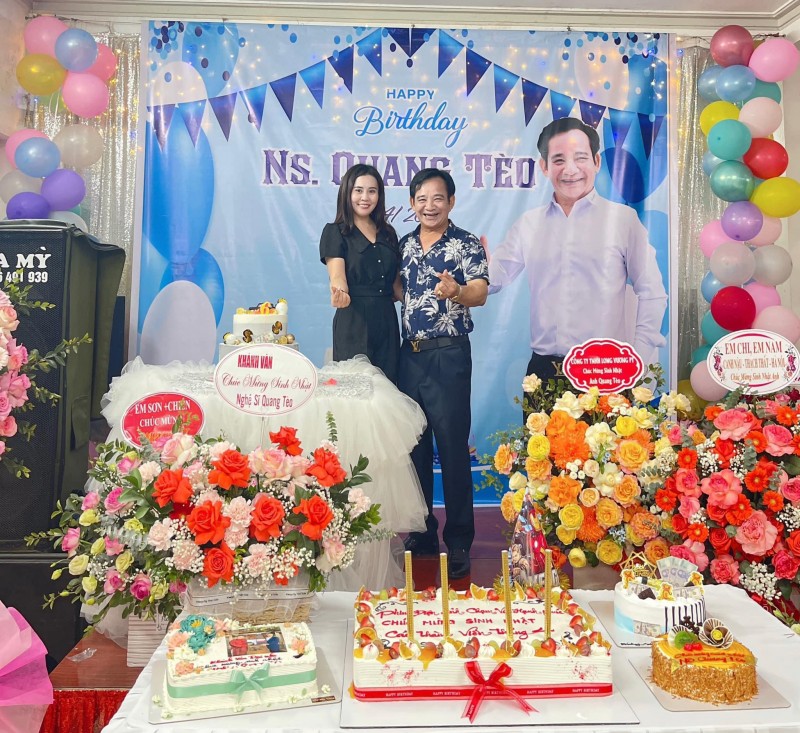Tại sinh nhật nghệ sĩ Quang Tèo, Phan Kim Oanh cũng được Quang Tèo giới thiệu trước đông đảo bạn bè và người hâm mộ