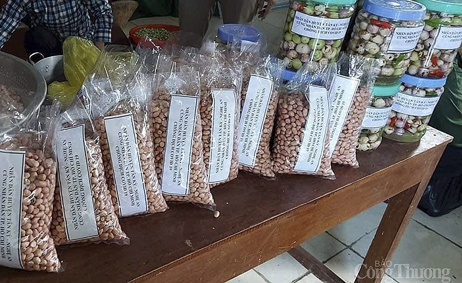 Ở TP. Vinh, các huyện Thanh Chương, Quỳnh Lưu, Nam Đàn, Nghi Lộc… và một số địa phương ở Hà Tĩnh như Thạch Hà, TP Hà Tĩnh, Cẩm Xuyên, Hồng Lĩnh... chị em phụ nữ cùng nhau làm hàng trăm kg cá khô, ruốc bông, hũ muối lạc… để hỗ trợ bà con lao động khó khăn xa quê đang bị kẹt lại vì dịch ở TP. Hồ Chí Minh.