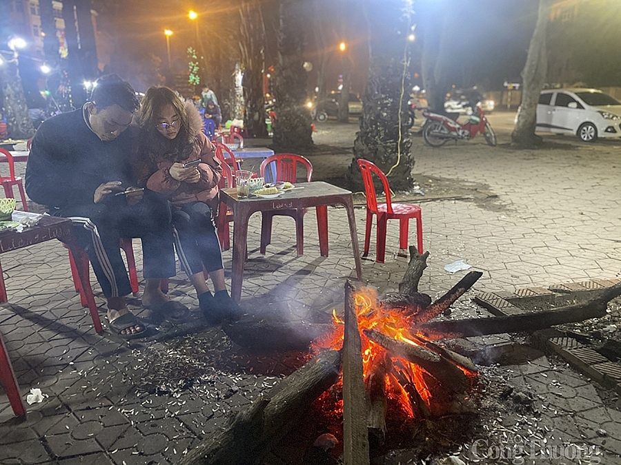 Để chống chọi với thời tiết lạnh giá, nhiều người nhóm thêm lửa để sưởi ấm cơ thể.