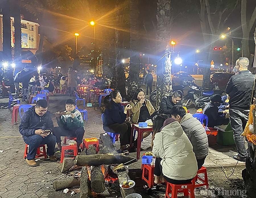 Mặc dầu trời lạnh thấu thịt da nhưng khá nhiều người muốn tìm chút hơi ấm liền tấp vào vỉa hè của khu phố nhỏ, nhẫn nại ngồi đợi bên một bếp than nhỏ hồng đượm, một chiếc quạt bằng nan, mấy bắp ngô, vài củ khoai lang mật, túi mía nướng.. . góc quán nhỏ chỉ có vậy, nhưng làm ấm cả một góc vỉa hè đêm đông lạnh giá.