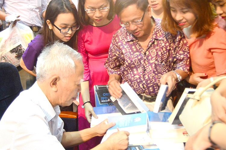 Nguyên Phó Thủ tướng Vũ Khoan ký tặng sách cho độc giả |