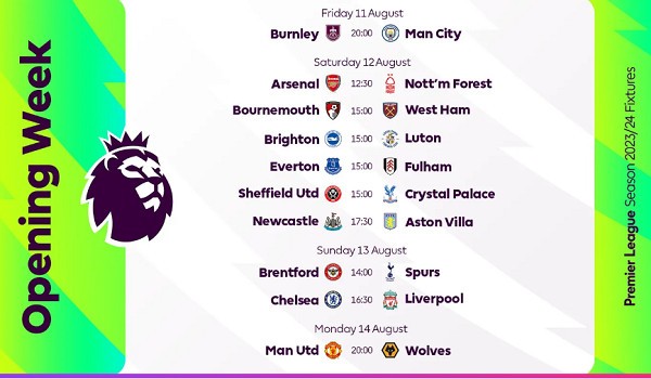 | Lịch thi đấu vòng 1 Premier League 2023/24 |