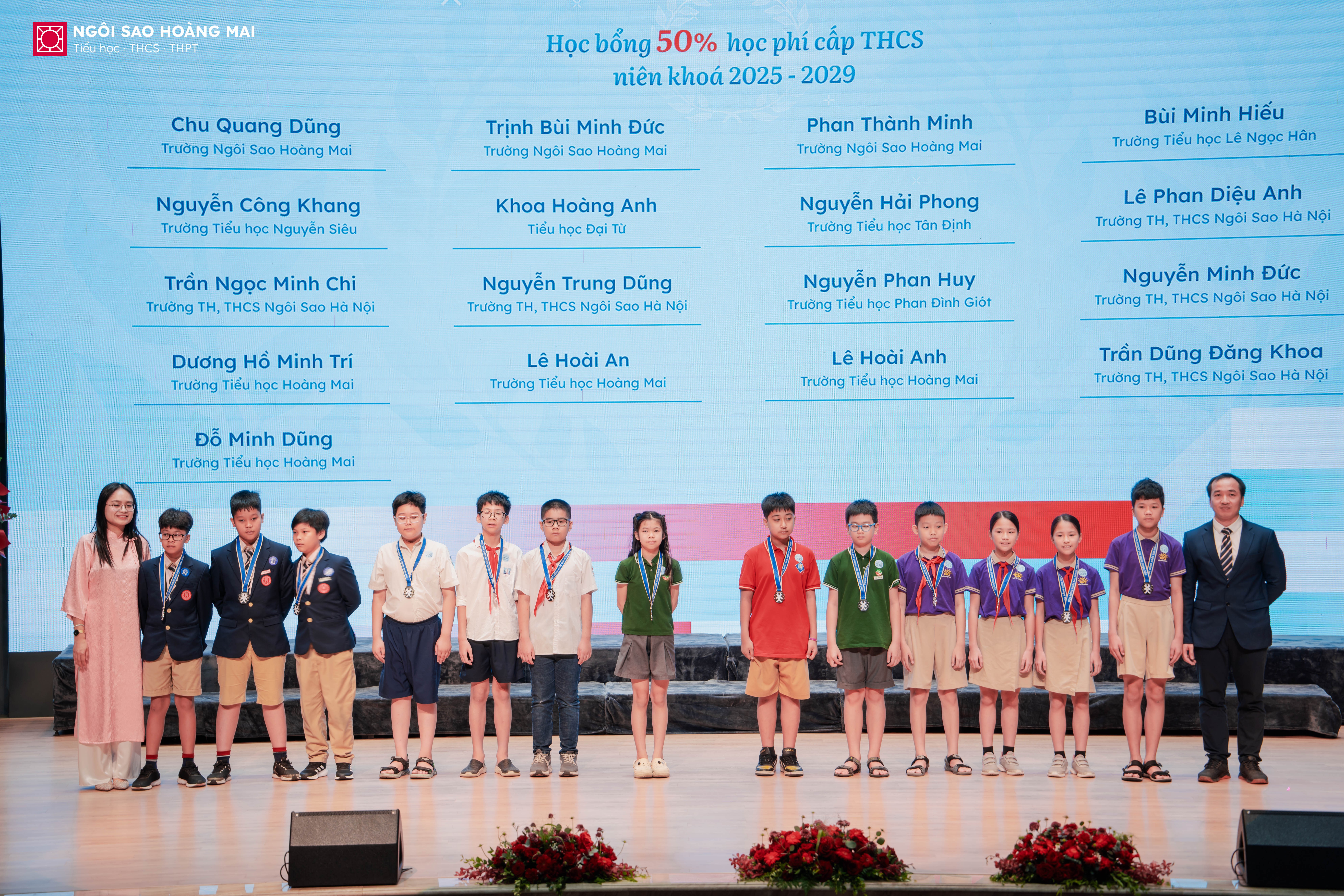 Đáng chú ý, ngày 26/5 vừa qua, Trường đã tổ chức “Lễ Vinh danh học sinh tiêu biểu và trao học bổng Ngôi Sao Hoàng Mai” - sự kiện thường niên mang đậm dấu ấn tri ân và khích lệ, đồng thời khẳng định vị thế ngày càng lớn mạnh của nhà trường trên hành trình chinh phục đỉnh cao tri thức.