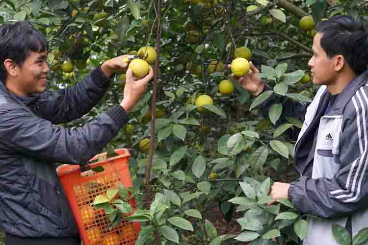 Cuối tháng Chạp, khi không khí Tết đã chộn rộn khắp vùng quê, chúng tôi về trang trại cam Thiên Sơn ở xã Đồng Thành, huyện Yên Thành do Công ty Cổ phần Sao Mai đầu tư xây dựng từ năm 2004, hiện nay có tổng diện tích 20 ha, trong đó 16 ha cam đã đi vào kinh doanh. Giống cam được trồng chủ yếu ở đây là cam Xã Đoài và Vân Du, với quy trình kỹ thuật chăm sóc chặt chẽ và đã được Việt Gap chứng nhận là sản phẩm sạch. Vì chất lượng tốt, mẫu mã đẹp, an toàn nên giá cam Thiên Sơn cao hơn so với cam trồng ở những nơi khác. Mới tuổi 28, “tỷ phú 8X” Nguyễn Hữu Phúc ở Yên Thành đã là chủ vườn cam cho thu nhập hơn chục tỷ đồng/năm. Nói về giá trị của vườn cam, Phúc hào hứng chia sẻ: “Một ha cam cho thu hoạch khoảng 50 tấn/năm. Với mức giá trung bình từ 45.000 - 55.000 đồng/kg, tổng thu mỗi năm khoảng hơn 2 tỷ đồng… Điều đáng mừng là cam rất dễ tiêu thụ, thu hoạch đến đâu thương lái thu mua đến đó. Hàng năm, trang trại cam của gia đình Phúc tạo việc làm cho hàng chục lao động với thu nhập trung bình 4 triệu đồng/người/tháng…”.