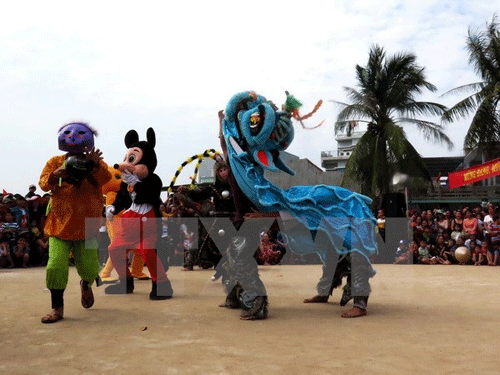 Biểu diễn múa lân tại lễ hội. (Ảnh: Phước Ngọc/TTXVN)