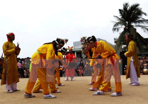 Nghi thức múa bả trạo cầu ngư. (Ảnh: Phước Ngọc/TTXVN)