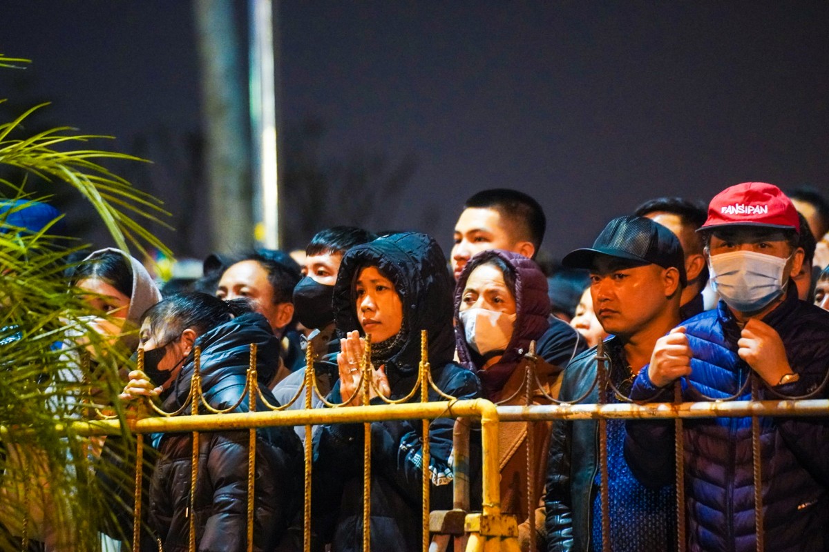 | Người dân chỉ có thể tập trung bên ngoài cổng đền, chờ Lễ khai ấn kết thúc mới có thể vào dâng hương |