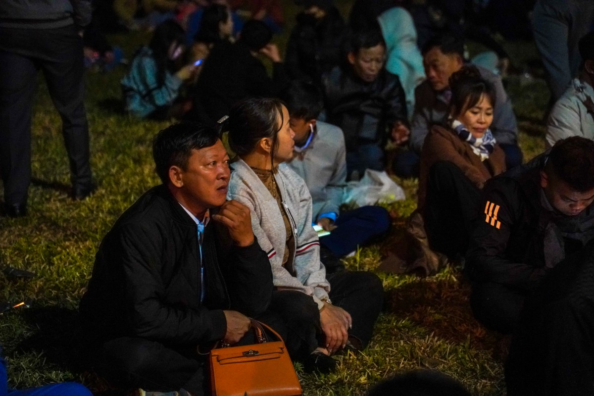| Hàng vạn người ngồi chờ bên ngoài quảng trường phía trước cổng đền Trần |