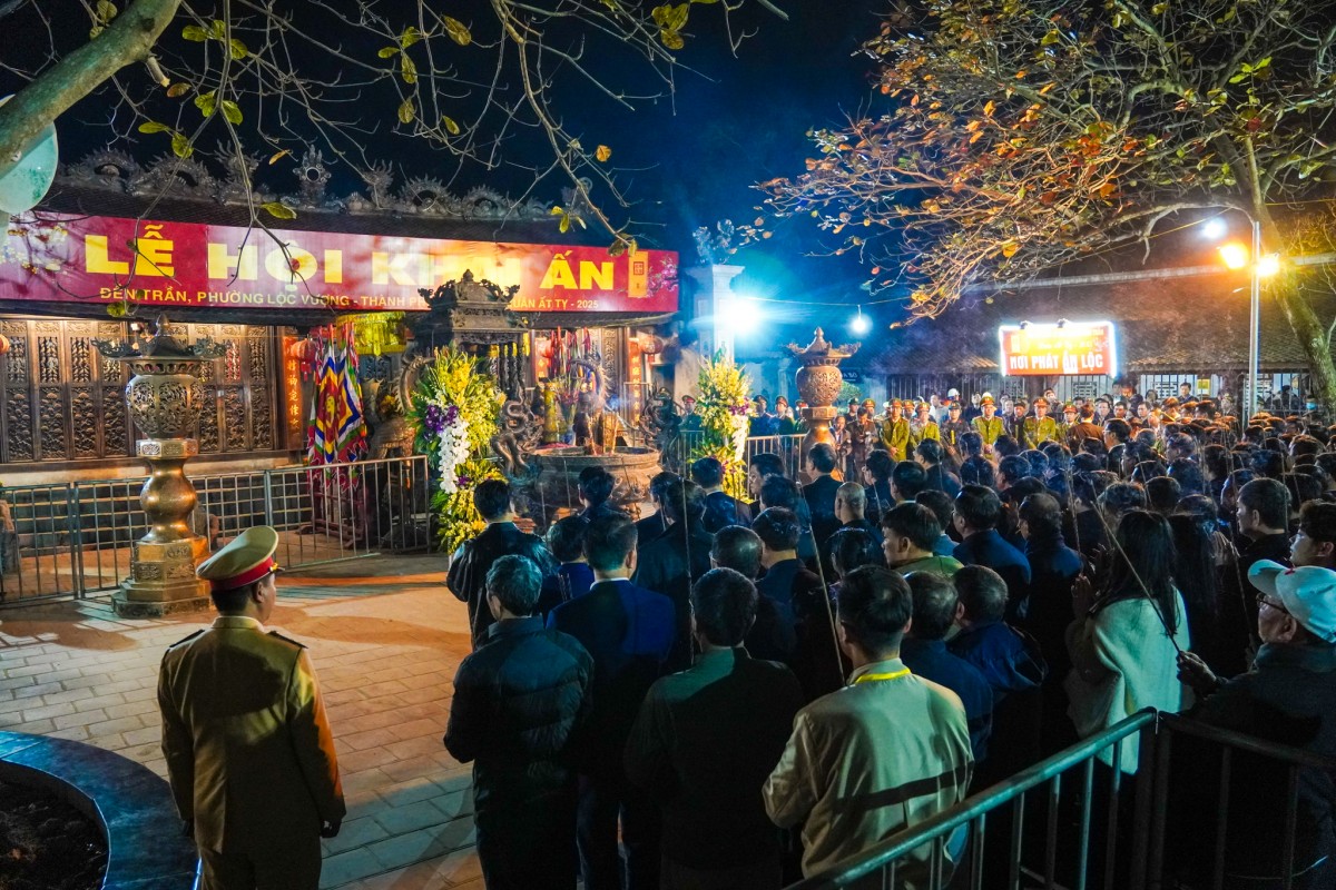 Trong suốt thời gian diễn ra lễ hội, công tác đảm bảo an ninh được đặt lên hàng đầu. Theo Ban quản lý Khu di tích đền Trần, việc thiết lập tới 5 vòng an ninh với hơn 2.500 cán bộ, chiến sĩ công an, quân đội và lực lượng hỗ trợ được triển khai để đảm bảo an toàn tuyệt đối. Các biện pháp kiểm soát, phân luồng giao thông, phòng chống cháy nổ, ngăn chặn tình trạng chen lấn, xô đẩy hoặc bán hàng rong chèo kéo du khách đều được thực hiện nghiêm ngặt. Nhờ đó, hình ảnh phản cảm và mất trật tự trước, trong và sau thời điểm khai ấn đã giảm đáng kể, giúp khách thập phương an tâm hành lễ.