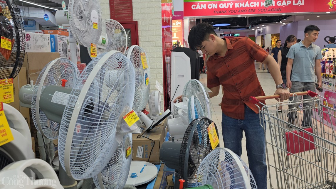 Các loại quạt cây, quạt để bàn cũng đang giảm giá 20 - 30%. Nhân viên bán hàng cho biết, sản phẩm này đang thu hút nhiều khách nhất vì nhu cầu rất phổ biến |