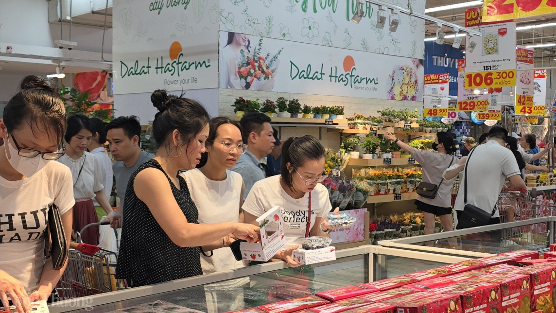 Giám đốc siêu thị Co.opmart Hà Đông Nguyễn Thị Kim Dung cho biết, trong những ngày nghỉ lễ, lượng khách đến mua sắm tại siêu thị khá đông, sức mua tăng gấp đôi, gấp ba so với ngày thường.