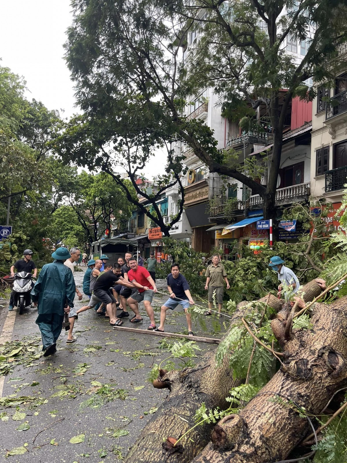 Do ảnh hưởng của bão Yagi, nhiều tuyến phố, con đường của Hà Nội trong cảnh ngổn ngang, hoang tàn. Theo ghi nhận, hiện thành phố đã bắt đầu công tác dọn dẹp đường phố, khắc phục hậu quả sau bão. Người dân ở các quận, huyện cùng chung tay với các lực lượng chức năng dọn dẹp cây cối nghiêng đổ.