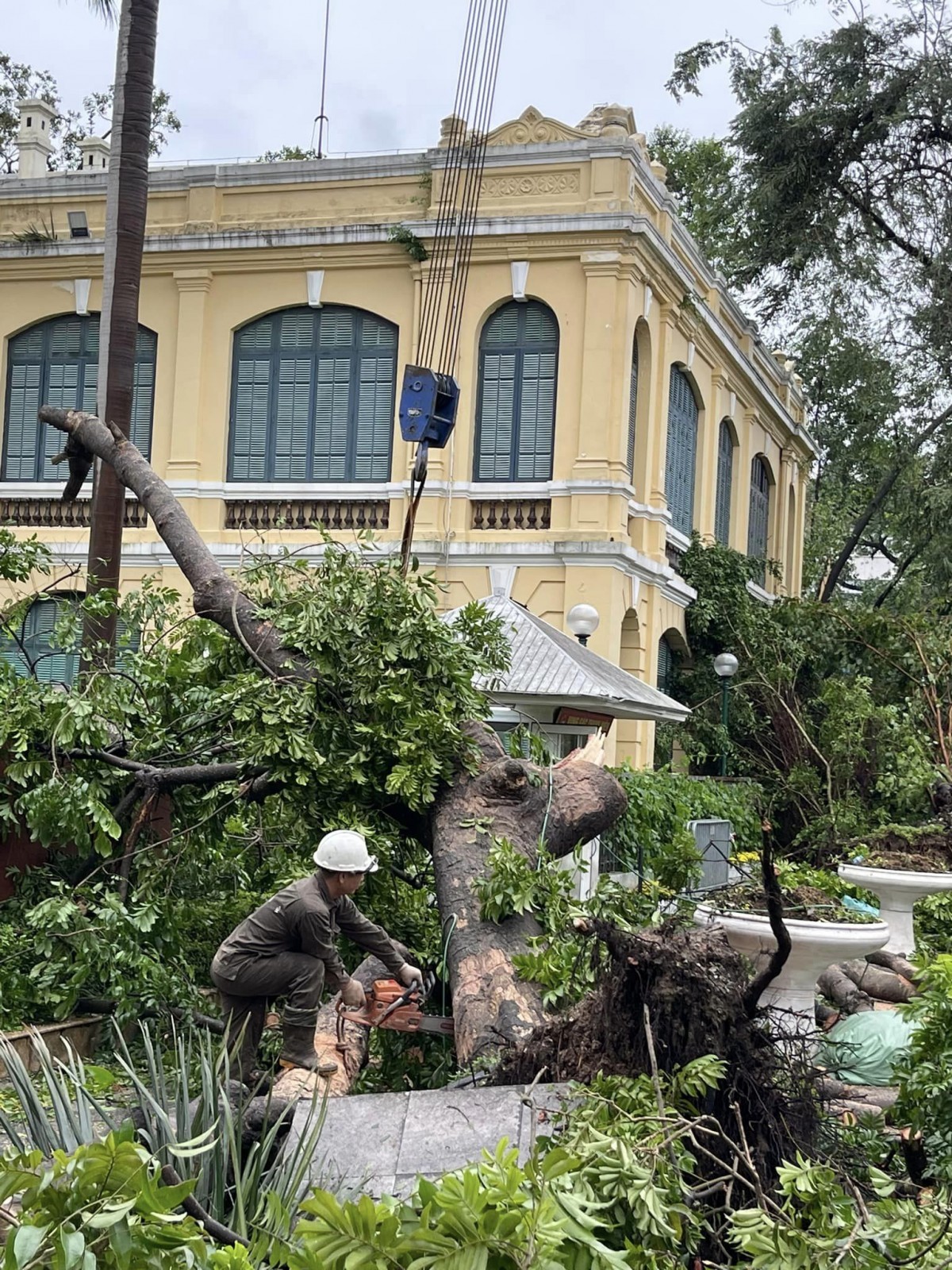 Dưới đây là một số hình ảnh thực tế công tác thu dọn đường phố, khắc phục hậu quả sau bão tại Hà Nội: