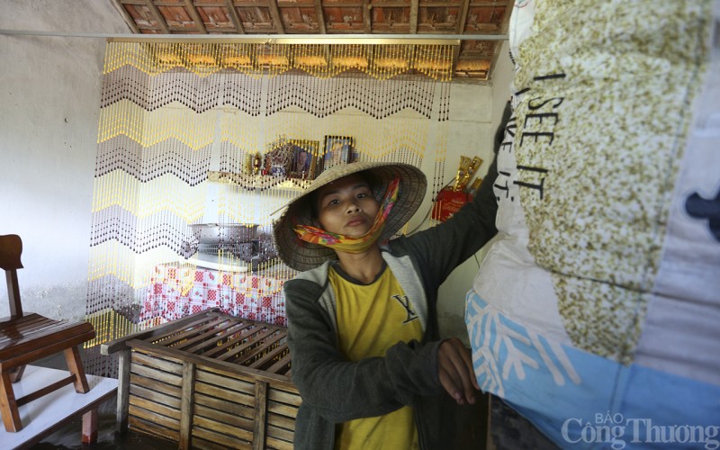 | Chị Phan Thị Kim Oanh (32 tuổi), ở xã Thường Nga nói: Nước lên nhanh khiến chị không kịp sơ tán hết tài sản. Một số bao tải đựng lúa bị ngâm trong nước, các thiết bị điện hư hỏng |