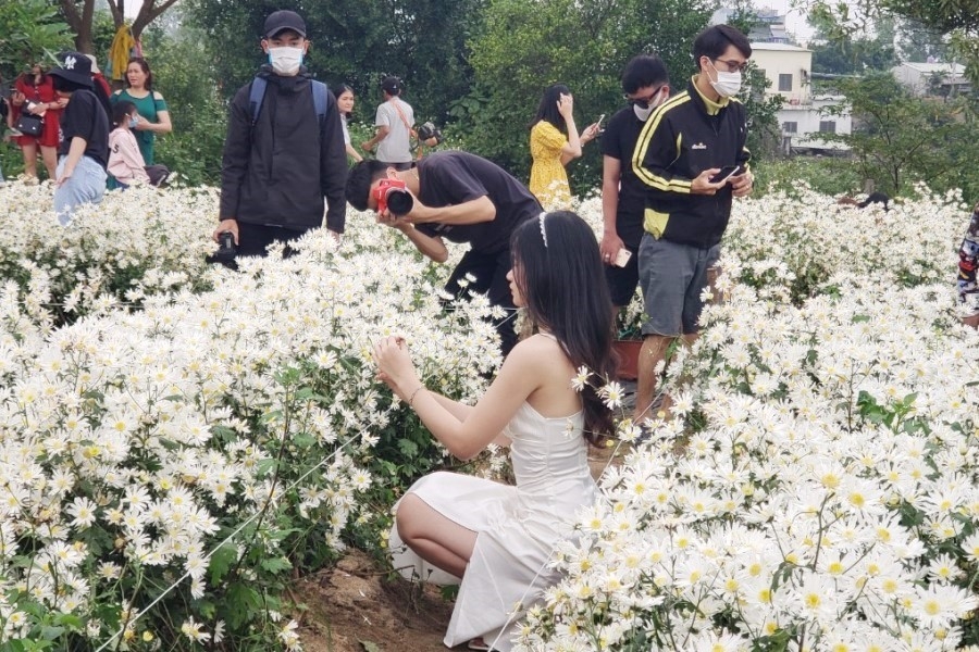 | Vườn cúc họa mi trái mùa trở thành điểm đến được rất nhiều người dân, du khách tại TP. Đà Nẵng lựa chọn ghi lại những khoảnh khắc mùa xuân của năm |