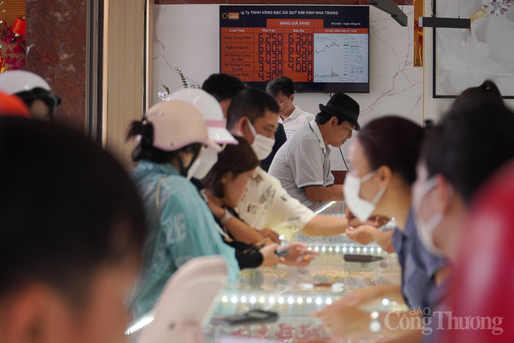 Nhiều tiệm vàng ở TP. Nha Trang (Khánh Hòa) đông người mua sáng ngày vía Thần Tài, song không khí có phần kém sôi động hơn như vài năm trước.