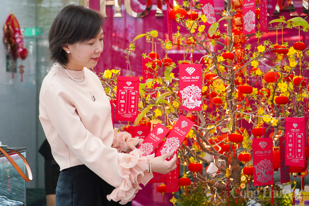 | Trong không khí phấn khởi của những ngày đầu xuân năm mới, nhiều cửa hàng vàng cũng tặng các phần quà may mắn như lì xì cho khách hàng. |