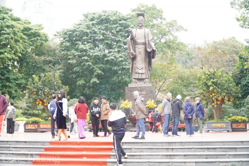Thời tiết ngày mùng 1 Tết tại Hà Nội lạnh giá, chỉ khoảng 18 độ C. Tuy vậy, nhiều gia đình, nhóm bạn vẫn du xuân sớm.