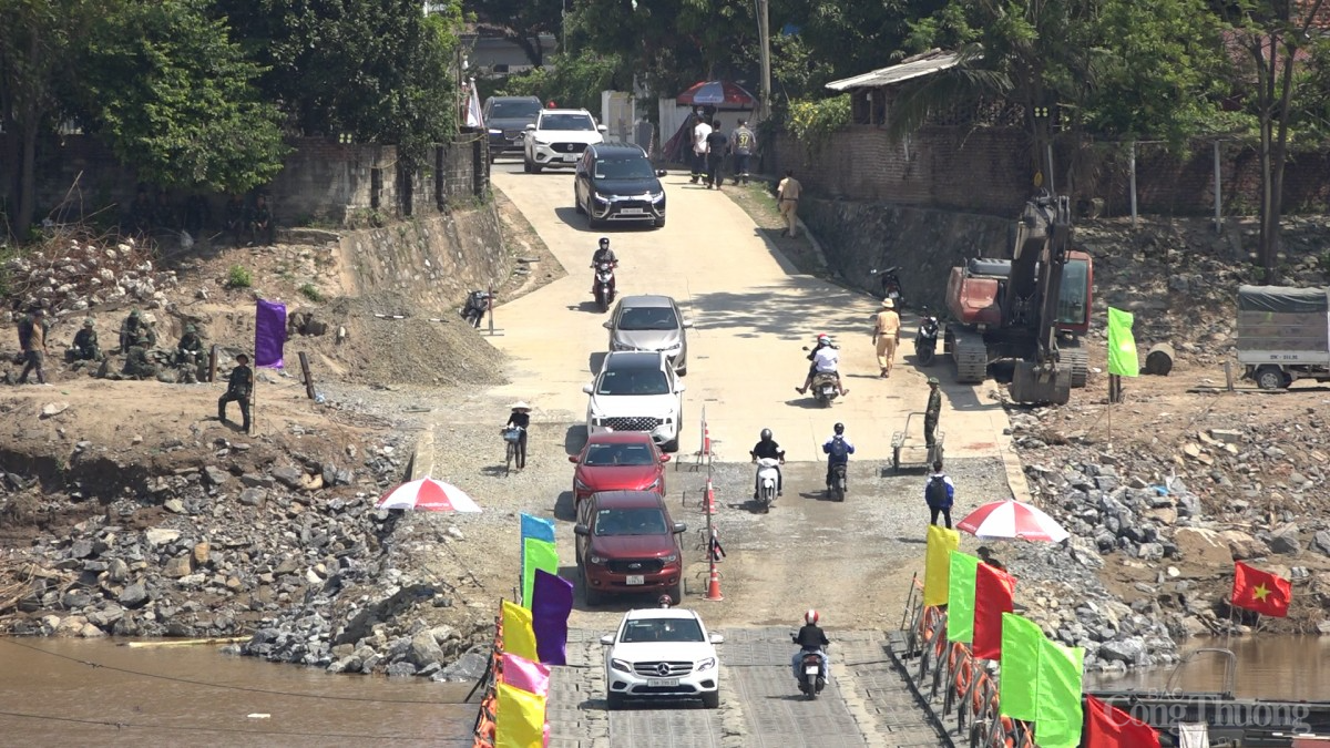 Trước đó, ngày 6/10, sau khi khảo sát, đánh giá tình hình, nhận thấy lưu lượng nước trên sông Hồng đã đảm bảo ngưỡng an toàn cho phép, Binh chủng Công binh đã chỉ đạo các lực lượng khớp nối lại cầu phao PMP 60 tấn để phục vụ nhu cầu đi lại của người dân. Các lực lượng chức năng sẽ túc trực tại cầu để phục vụ nhân dân qua cầu phao từ 6h sáng đến 22h hàng ngày.