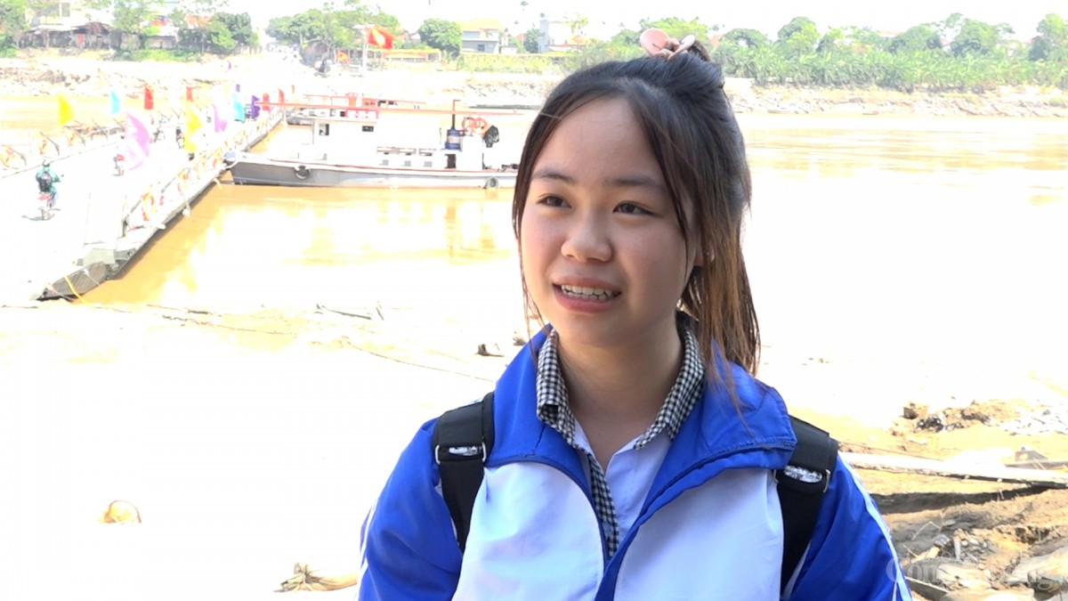 “Kể từ khi cầu Phong Châu bị sập, cháu phải dậy từ sớm, đi 50km sang cầu Ngọc Tháp để đi đến trường. Đi xa như vậy rất mệt, đến trường còn bị say xe nữa. Khi cầu phao được lắp, bọn cháu đi cầu phao sẽ tiện hơn đi ô tô. Sáng nay, cầu mới bắt đầu hoạt động trở lại, cầu rất chắc chắn và đảm bảo” - em Phạm Quỳnh Trang, học sinh Trường THPT Tam Nông cho biết.