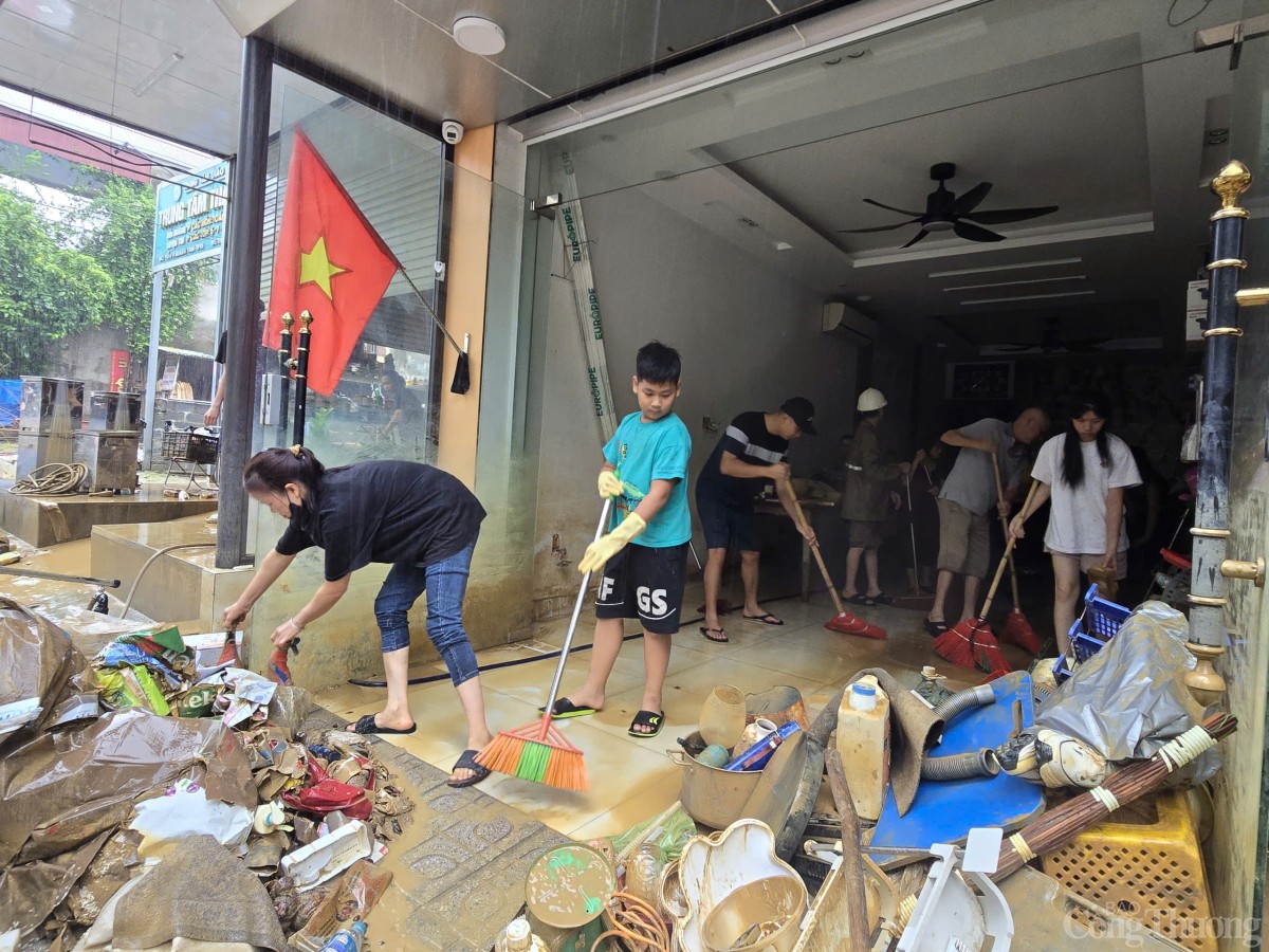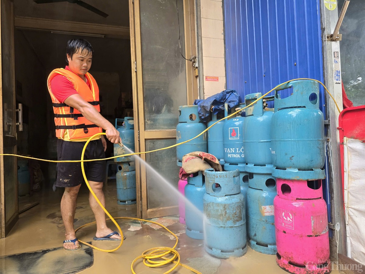 | Việc dọn dẹp được thực hiện kỹ lưỡng, vì nhiều đồ đạc bị ngâm trong nước lũ nhiều ngày - Ảnh: Thảo Nguyên |