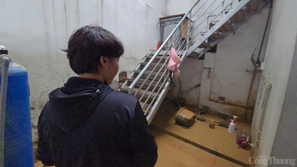 | Lớp bùn non dày, nhão phủ khắp sàn nhà - Ảnh: Thảo Nguyên |