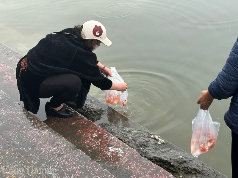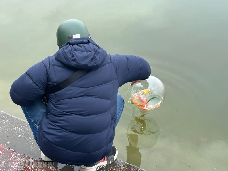 | Sau lễ cúng ông Công ông Táo, là nghi thức phóng sinh cá |